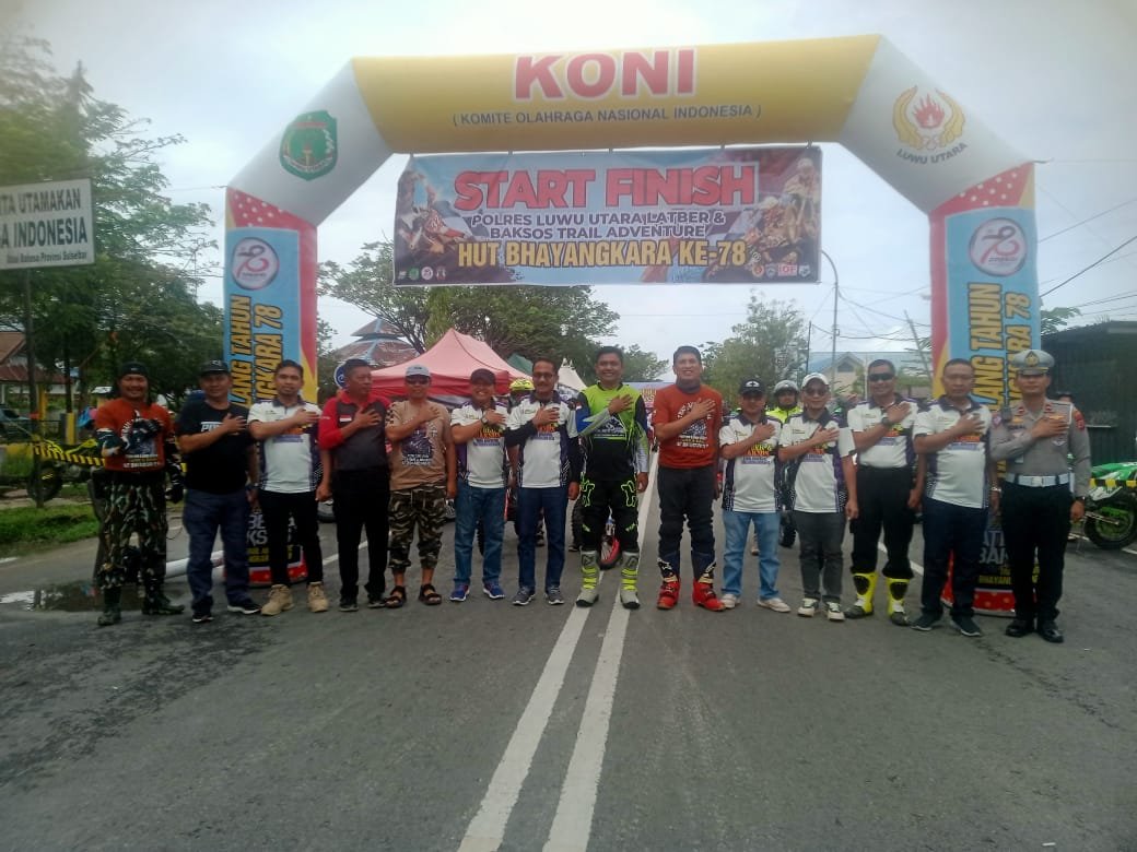 MASAMBA, TEKAPE.co – Meriahkan Hari Bhayangkara ke-78, Polres Luwu Utara menggelar latihan bersama (Latber) dan Baksos Trail Adventure, Sabtu 6 Juli 2024.