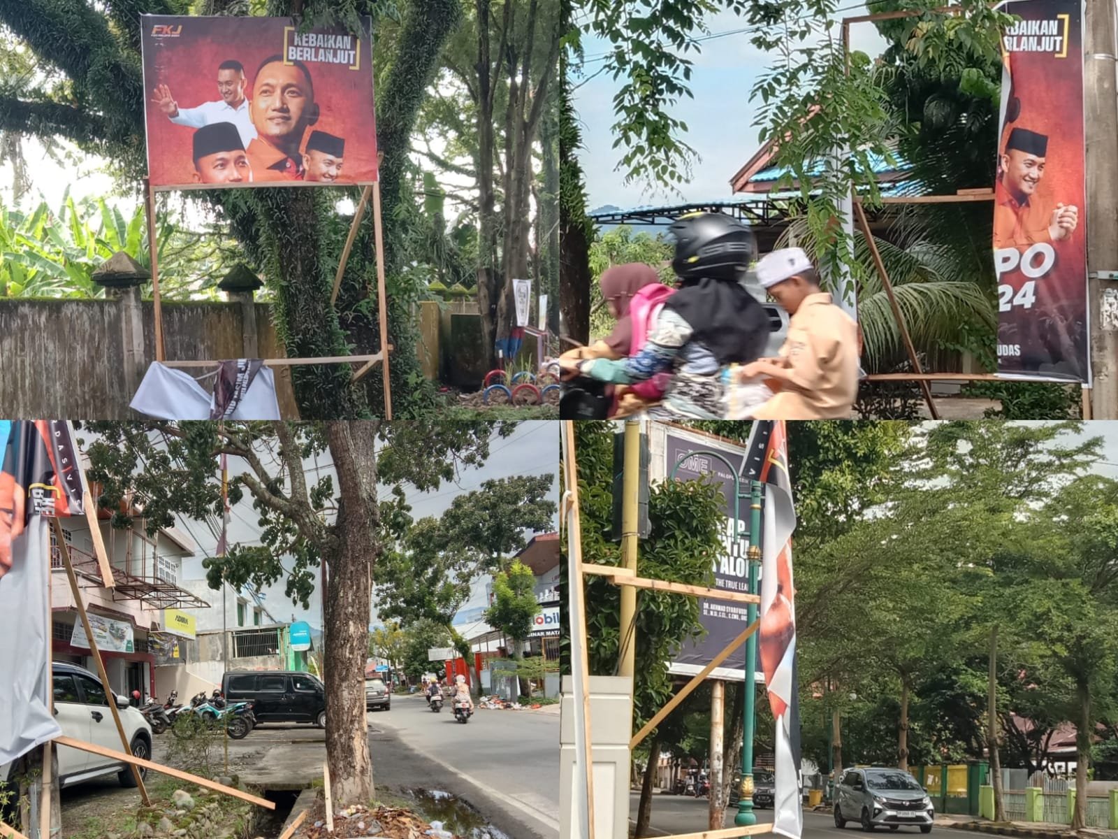 Baliho milik FKJ dirusak di beberapa wilayah di Palopo, pada Rabu 5 Juni 2024 malam.