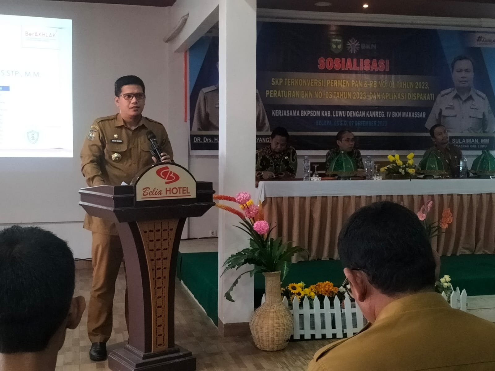 “Maka, dalam upaya meningkatkan proses pengelolaan layanan kepegawaian bagi ASN pada lingkup pemerintah Daerah Kabupaten Luwu, BKPSDM bekerjasama dengan Kantor Regional IV BKN Makassar dalam pelaksanaan Sosialisasi pada hari ini,” sambung, Andi Akham.