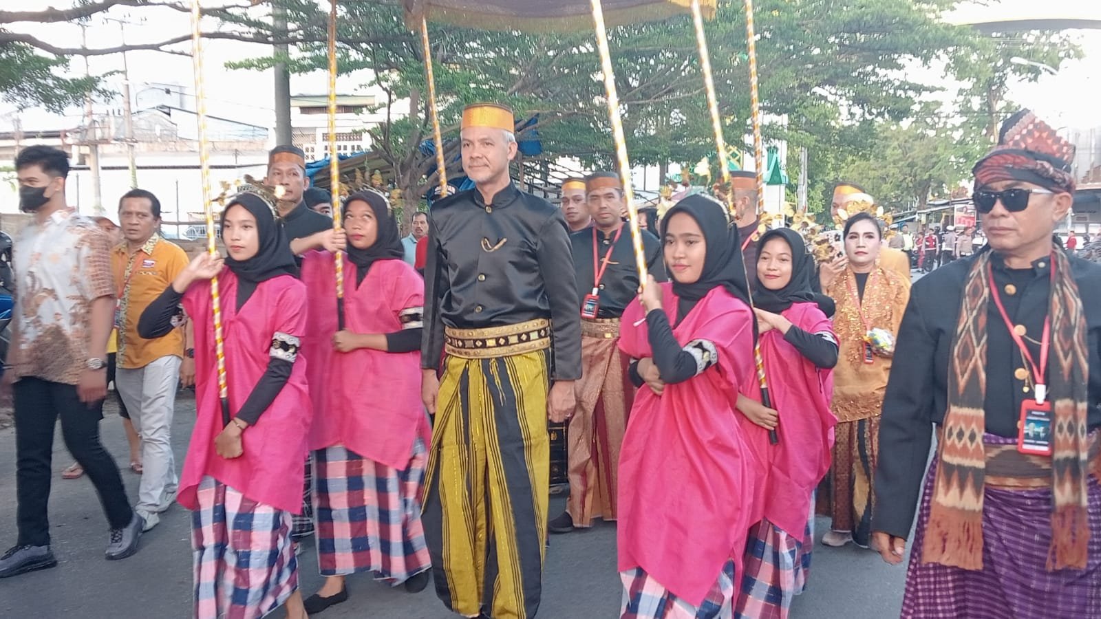Ganjar Pranowo kemudian disambut dengan Ripaduppai Lellung atau dipayungi dengan tenda bertiang enam yang dibawa enam gadis.