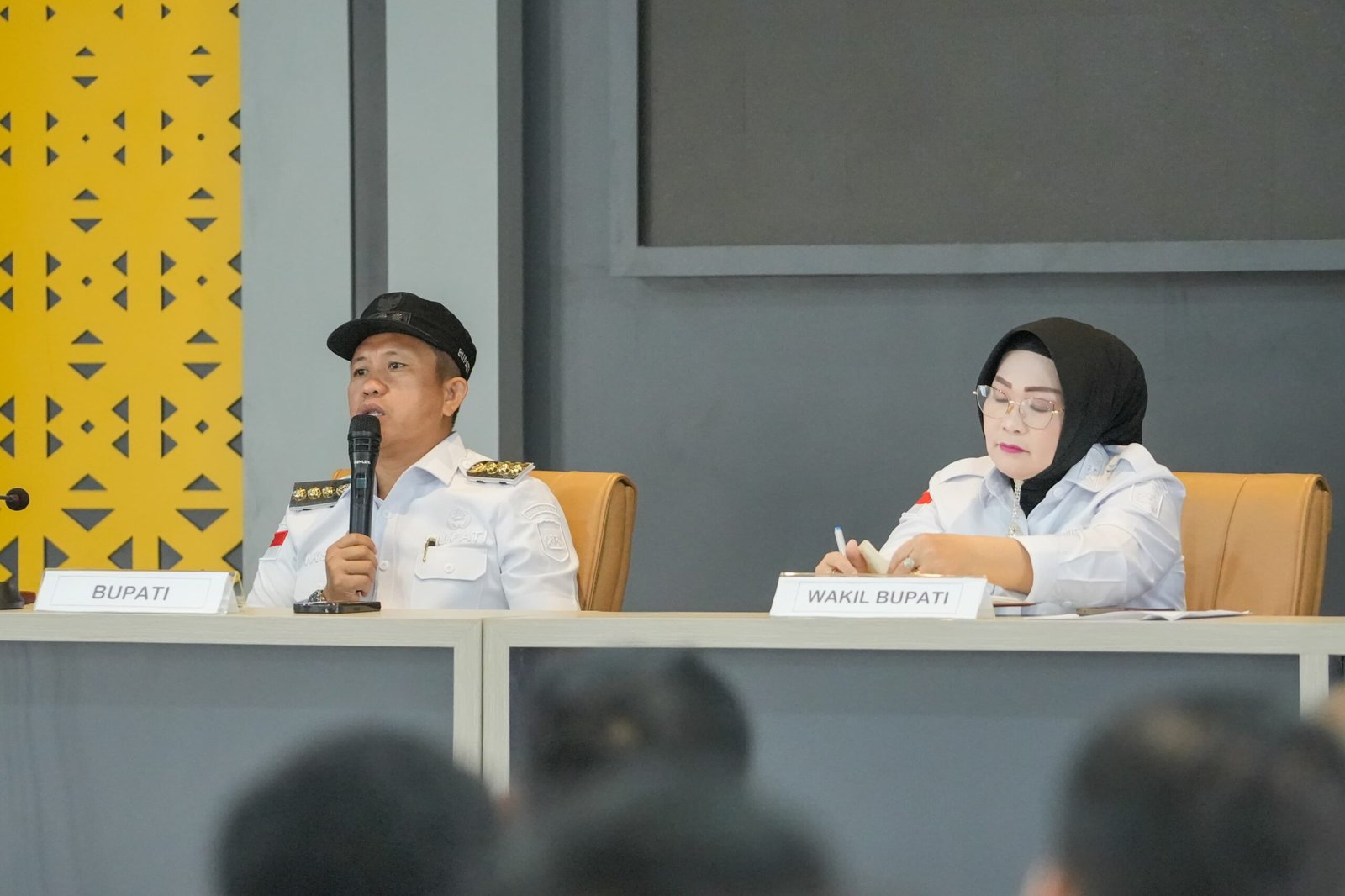 MOROWLI, TEKAPE.co – Bupati Morowali, Iksan Baharuddin Abdul Rauf, bersama Wakil Bupati, Iriane Iliyas, menggelar rapat koordinasi dengan perusahaan-perusahaan di Morowali, Rabu (12/3).
