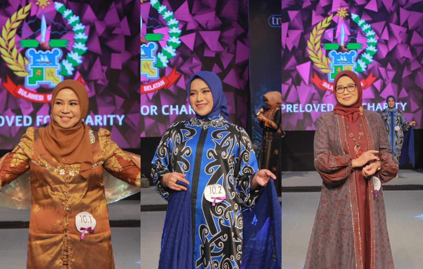 “Dalam fashion show preloved for charity, setiap kabupaten/kota menyumbangkan pakaian yang dipakai Ibu Bupati dan Ibu Wakil Bupati, serta Ibu Sekda serta pakaian layak pakai untuk dipamerkan dan dilelang yang selanjutnya hasilnya disumbangkan pada perempuan rentan,” terang Hj. Sitti Hidayah.