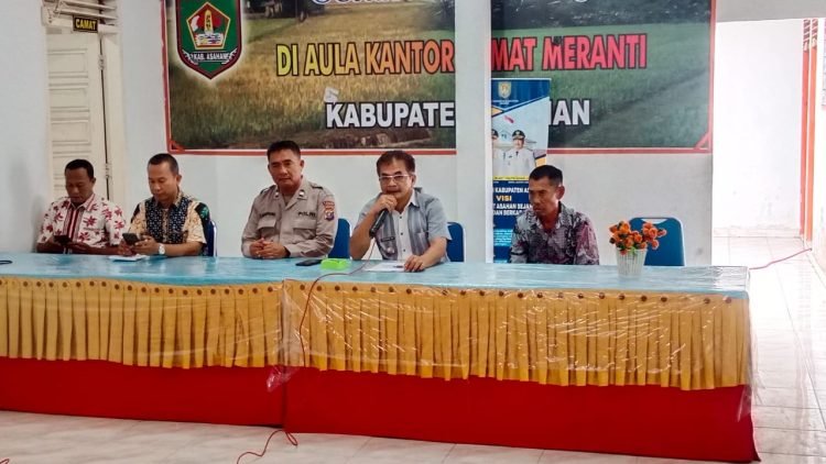 ASAHAN,TEKAPE.co – Camat Meranti Sugeng Surya Saragi melakukan mediasi permasalahan penyelesaian tanah warga di Dusun 1, Desa Meranti, Kecamatan Meranti, Kabupaten Asahan, Sumatera Utara (Sumut).Dalam pertemuan di aula Kantor Camat Meranti, Kamis (9/1/2025).itu, dihadiri Kapolisiyan Meranti Aiptu Sabar Manurung, Kepala Desa Meranti Kasno.
