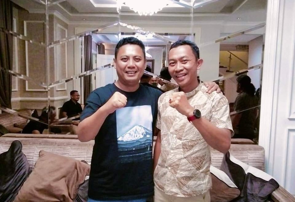 Ketua PDIP Lutim Budiman foto bersama dengan Ketua Gerindra Sulsel Andi Iwan Darmawan Atas (AIA), di kediaman AIA di Makassar. (ist)