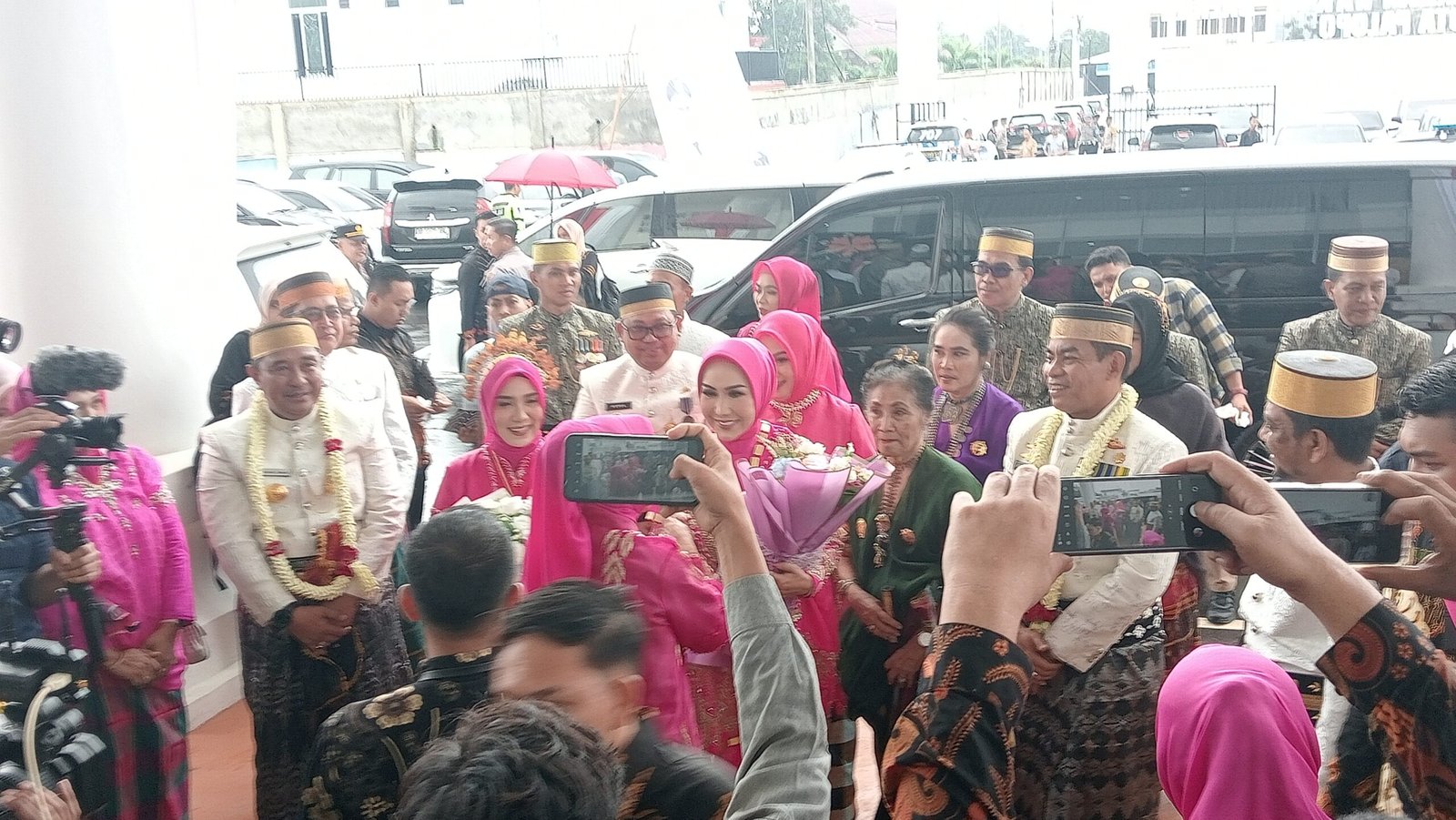 Ketua DPD II Partai Golkar Kota Palopo, Rahmat Masri Bandaso saat senam sehat dan bakti sosial Perempuan Golkar Palopo di pelataran kantor Golkar Palopo, jalan Andi Djemma, Minggu 3 Juli 2022. (ist)