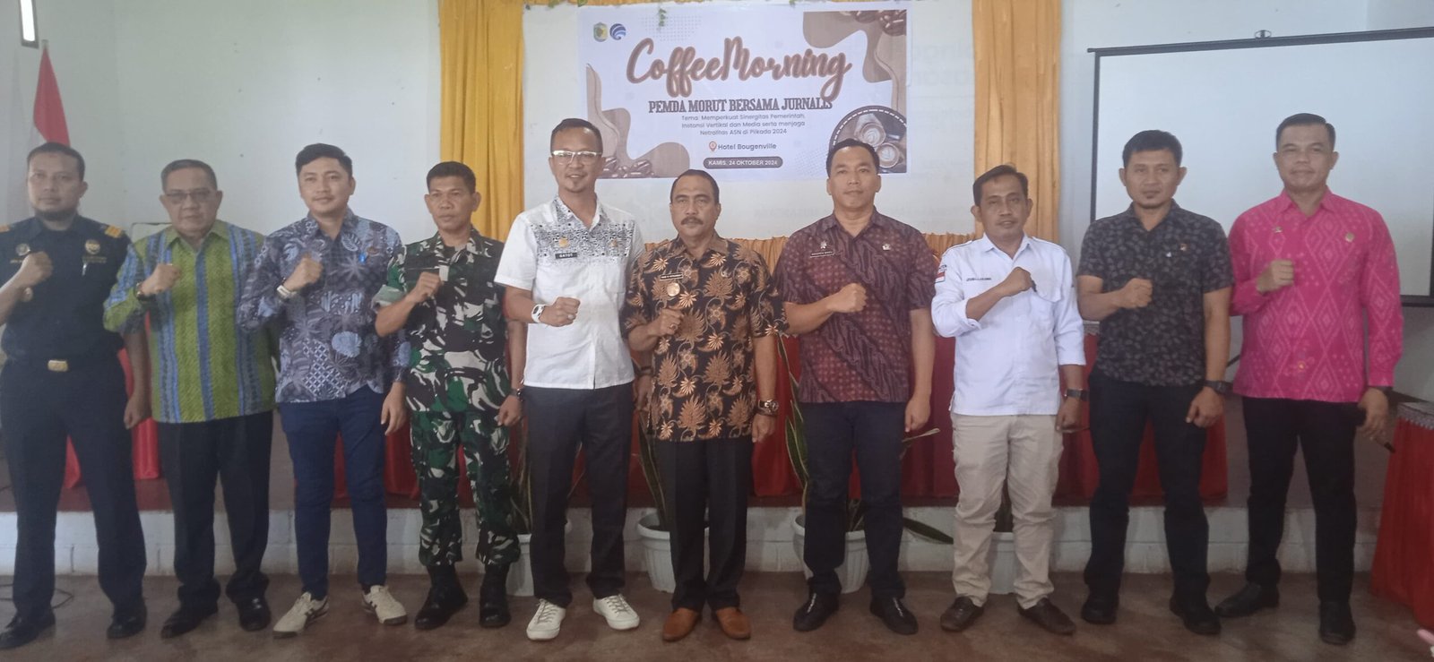 MORUT, TEKAPE.co – Dinas Komunikasi Dan Informasi (Diskominfo) Kabupaten Morowali Utara (Morut) menggelar kegiatan Coffee Morning Pemerintah Daerah (Pemda) Morut bersama Jurnalis, dengan tema ‘ Memperkuat Sinergisitas Pemerintah, Instansi Vertikal Dan Media Serta Menjaga Netralitas ASN di Pilkada 2024’.