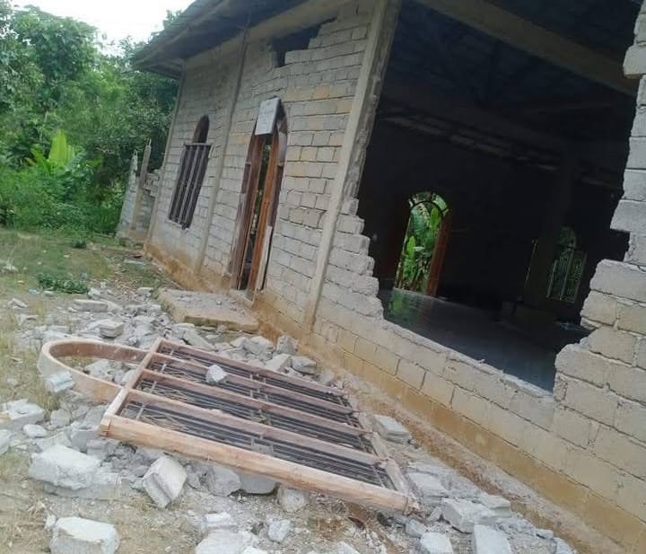 Kepala Desa Parumpanai, Judel, mengungkapkan bahwa dinding masjid mengalami kerusakan parah, sementara kusen jendela dan pintu ikut roboh.