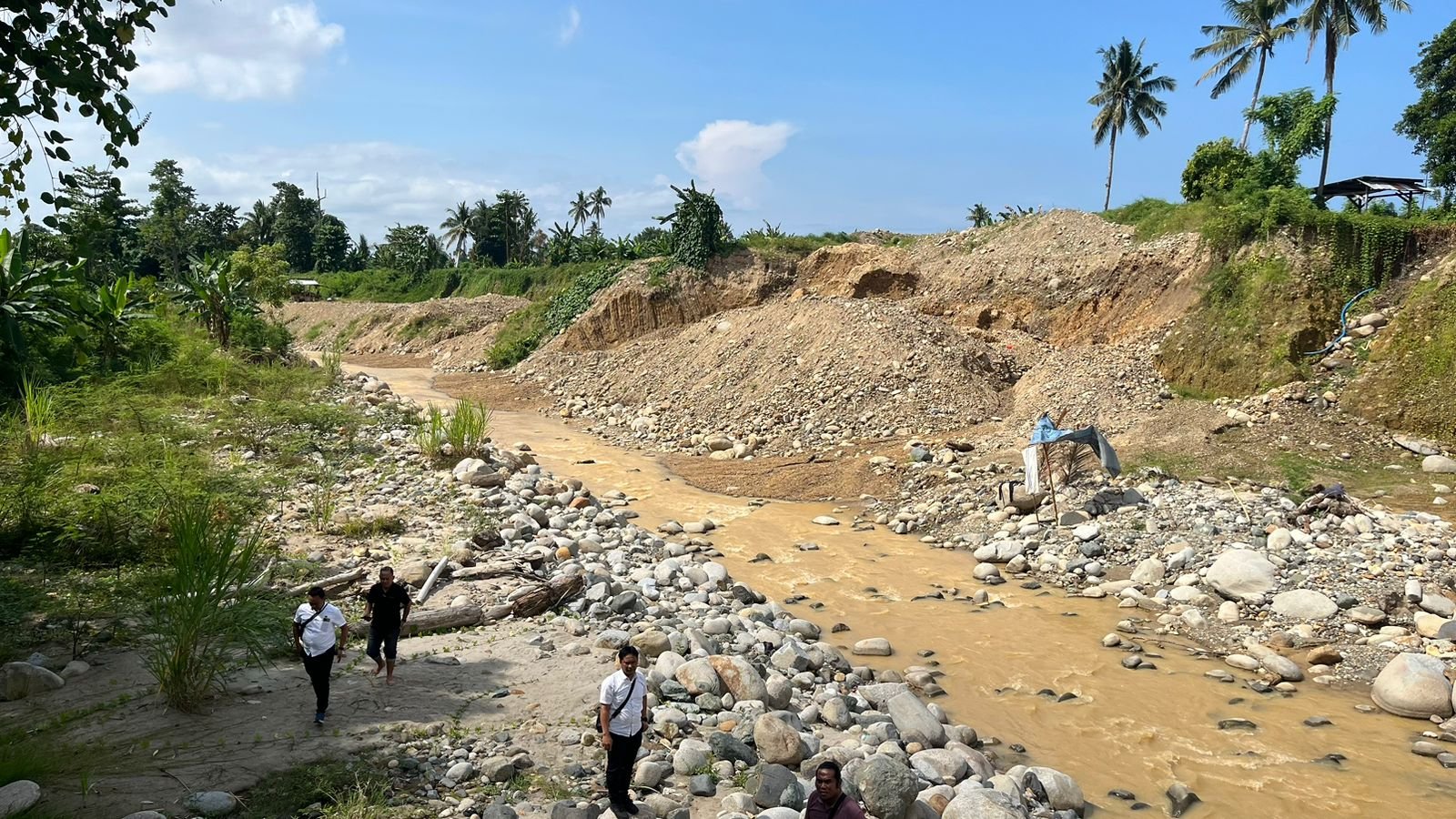 Saat di lokasi, polisi menemukan tiga orang yang sedang melakukan aktivitas pertambangan.