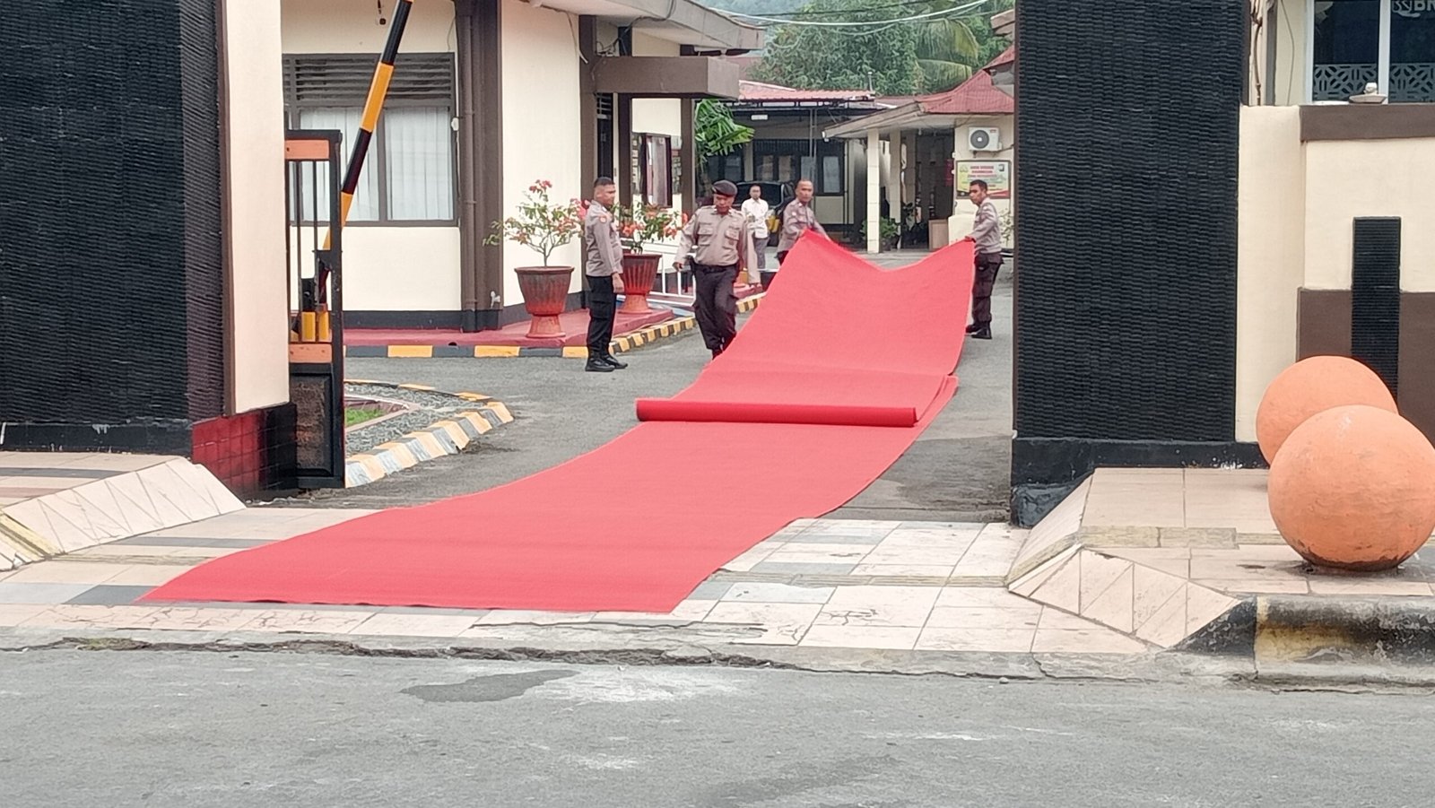Karpet merah juga telah dibentangkan untuk menyambut kedatangan orang nomor satu di Mapolda Sulsel ini.