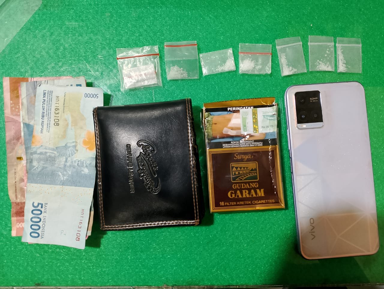 Dari tangan pelaku (F), polisi mengamankan 7 saset narkotika jenis sabu.