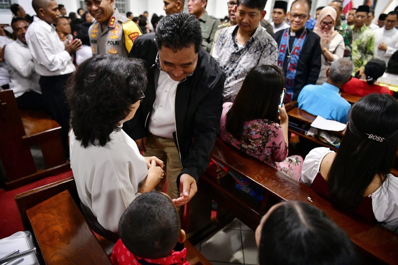 “Terimakasih kita sudah sama-sama Pj Gubernur, Pak Kapolda dan semua Forkopimda, Ibu Ketua yang luar biasa telah mendampingi pelaksanaan kegiatan ibadah Natal malam ini,” tuturnya.