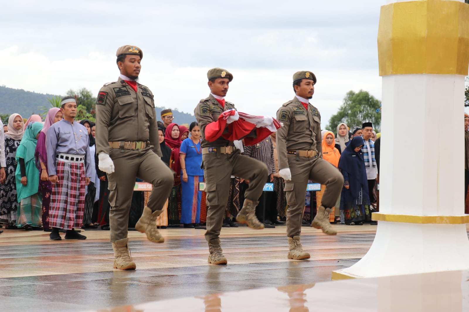 Sekretaris Daerah Luwu Timur, H Bahri Suli, memimpin langsung jalannya upacara. Ia tampil mengenakan pakaian adat Nusantara, begitu pula seluruh peserta upacara dari kalangan ASN, pejabat eselon, hingga tenaga upah jasa, yang turut menyemarakkan semangat kebhinekaan dalam balutan budaya lokal.