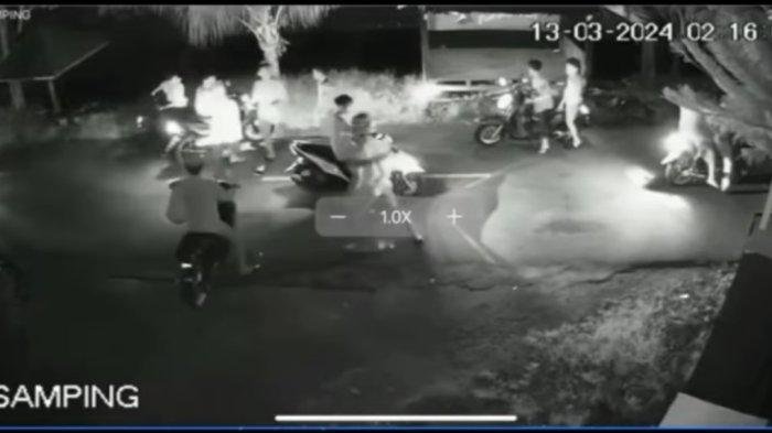 Dalam rekaman CCTV, gerombolan preman bermotor yang membawa sajam terlihat menghampiri warga nongkrong di Pos BTP Bogar, Kelurahan Salekoe, Kecamatan Wara Timur, Palopo, Rabu 13 Maret 2024 malam.