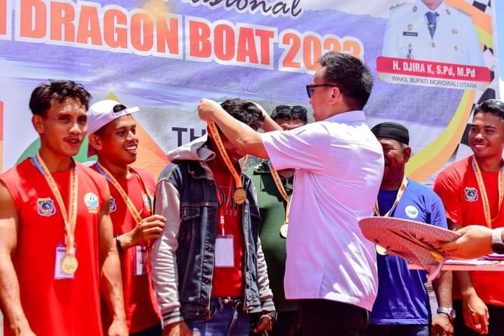 MORUT, TEKAPE.co – Tim pedayung dari Kabupaten Muna Barat, Provinsi Sulawesi Tenggara (Sultra), berhasil keluar sebagai juara 1 pada dua kelas perlombaan dalam Kejuaraan Terbuka Nasional Dragon Boat Teluk Tomori 2023 yang berlangsung di perairan Tanggul Pelangi Kolonodale, 13 – 18 Oktober 2023.