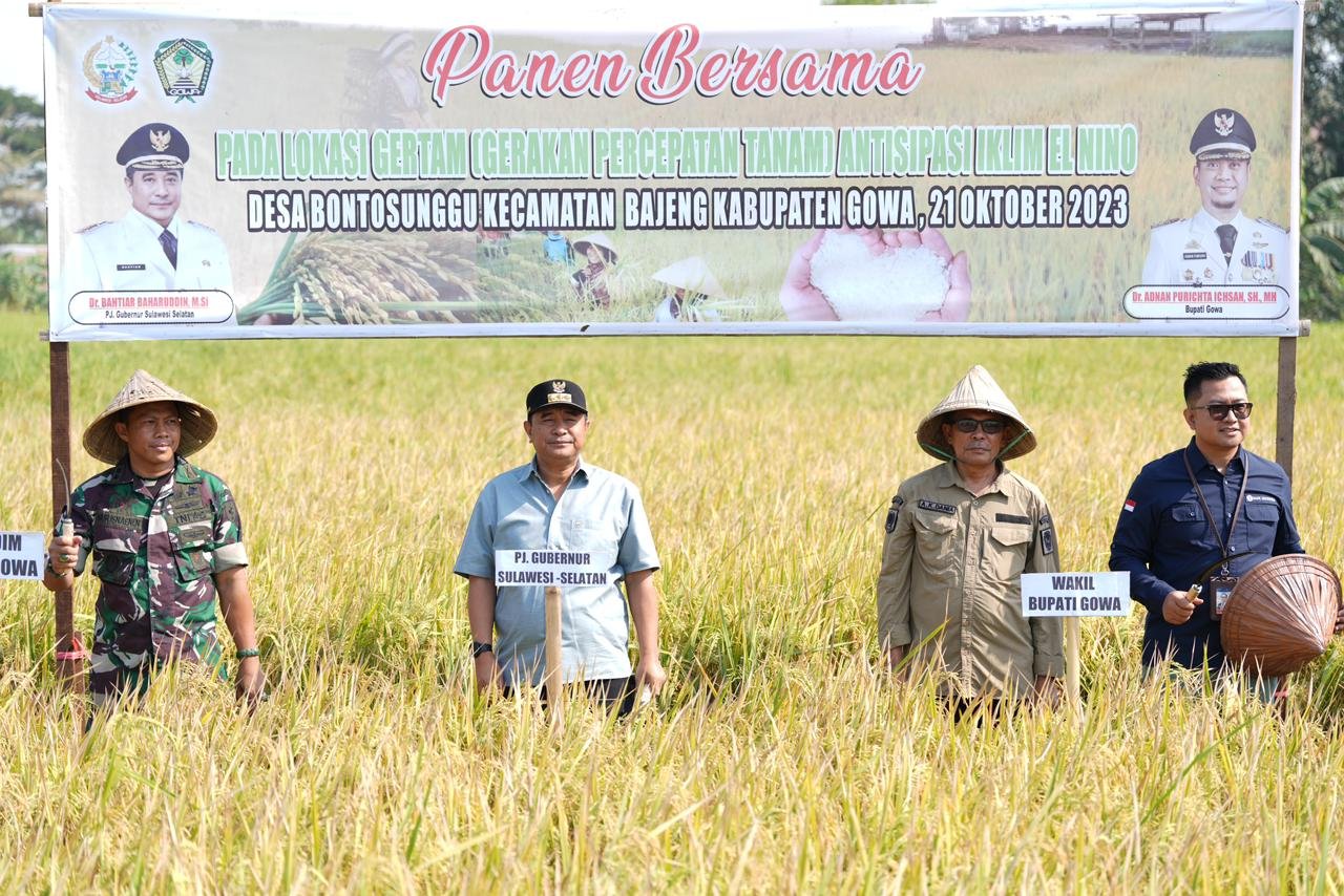 Panen raya digelar dilaksanakan bersama para petani di lokasi Gerakan Percepatan Tanam (Gertam) Antisipasi Iklim El-Nino, di Desa Bonto Sunggu, Kecamatan Bajeng.
