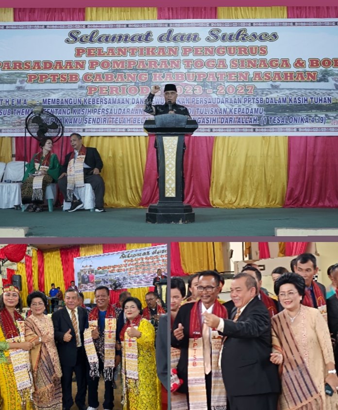 ASAHAN, TEKAPE.co — Pelantikan Pengurus Dewan Pimpinan Cabang Parsadaan Pomparan Toga Sinaga Boru-Bere Ibebere (DPC. PPTSB) Kabupaten Asahan periode 2023 – 2027, bertempat di Gedung Serbaguna Kisaran Jalan Akasia Kelurahan Mekar Baru, Kecamatan Kota Kisaran Barat Kabupaten Asahan, Minggu (12/11/2023).
