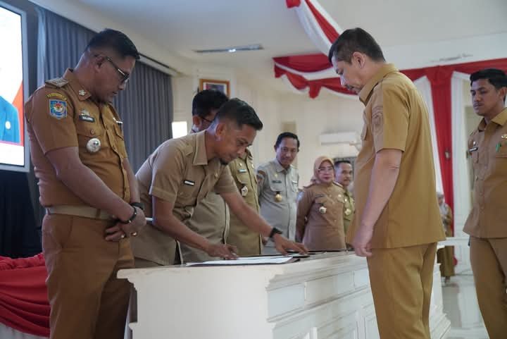 Penandatanganan tersebut dilakukan oleh Penjabat (Pj) Wali Kota Palopo, Drs. H. Firmanza DP, S.H., M.Si., selaku pemberi amanah, serta Pj Sekretaris Daerah dan para Pimpinan Perangkat Daerah sebagai penerima amanah.