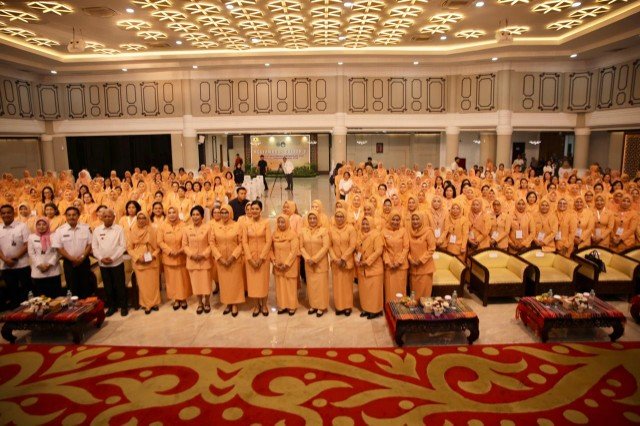ASAHAN, TEKAPE.co – Penasihat Dharma Wanita Persatuan (DWP) Kabupaten Asahan Ny Yusnila Indriati Taufik bersama pengurus lainnya mengikuti pelaksanaan Musyawarah Daerah (Musda) ke V Dharma Wanita Persatuan Provinsi Sumatera Utara.