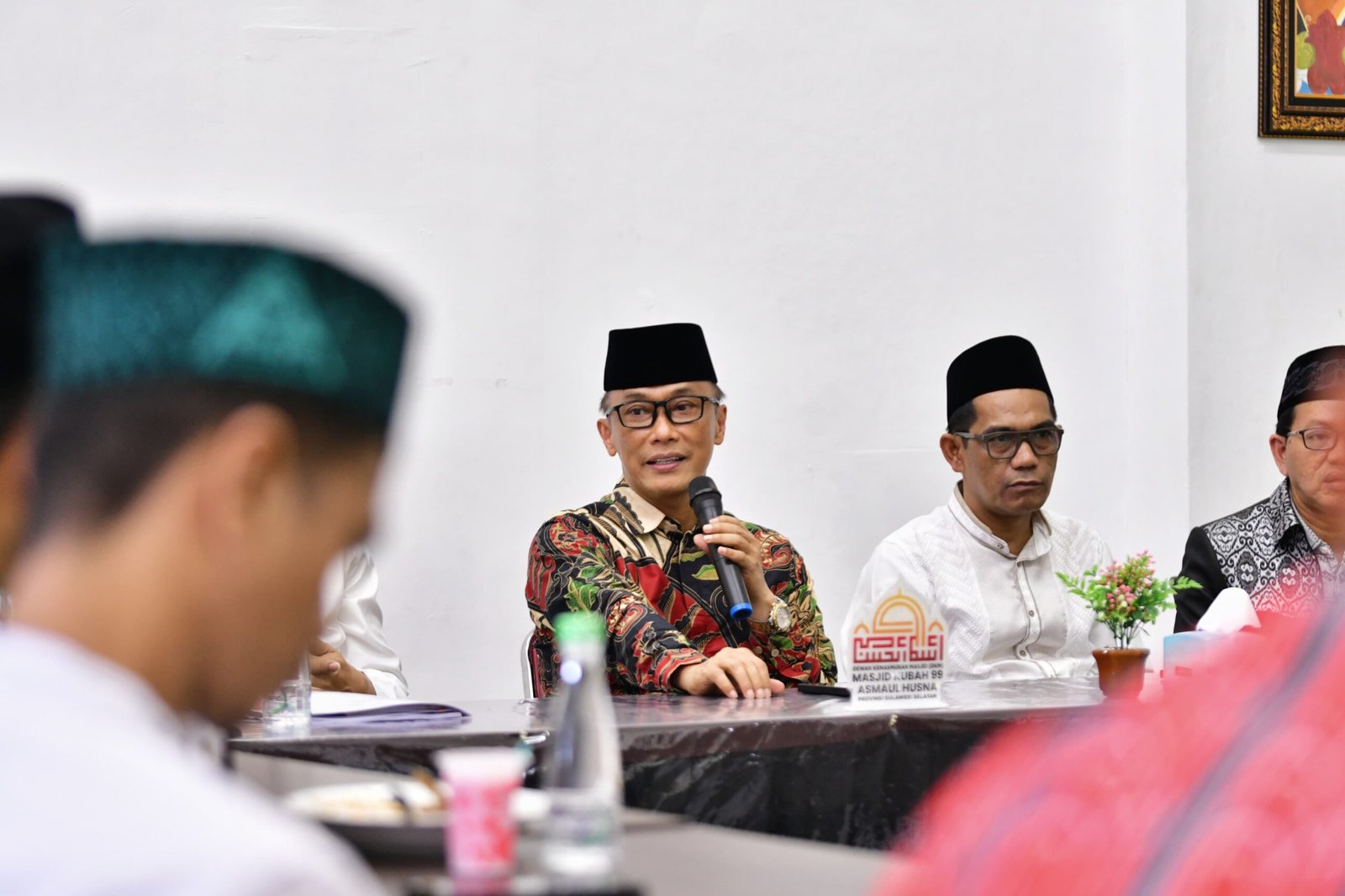 Penjabat Gubernur Sulawesi Selatan, Prof. Zudan Arif Fakrulloh bersilaturahmi dan berdialog dengan pengurus Masjid 99 Kubah, Makassar, usai melaksanakan salat Jumat. (ist)
