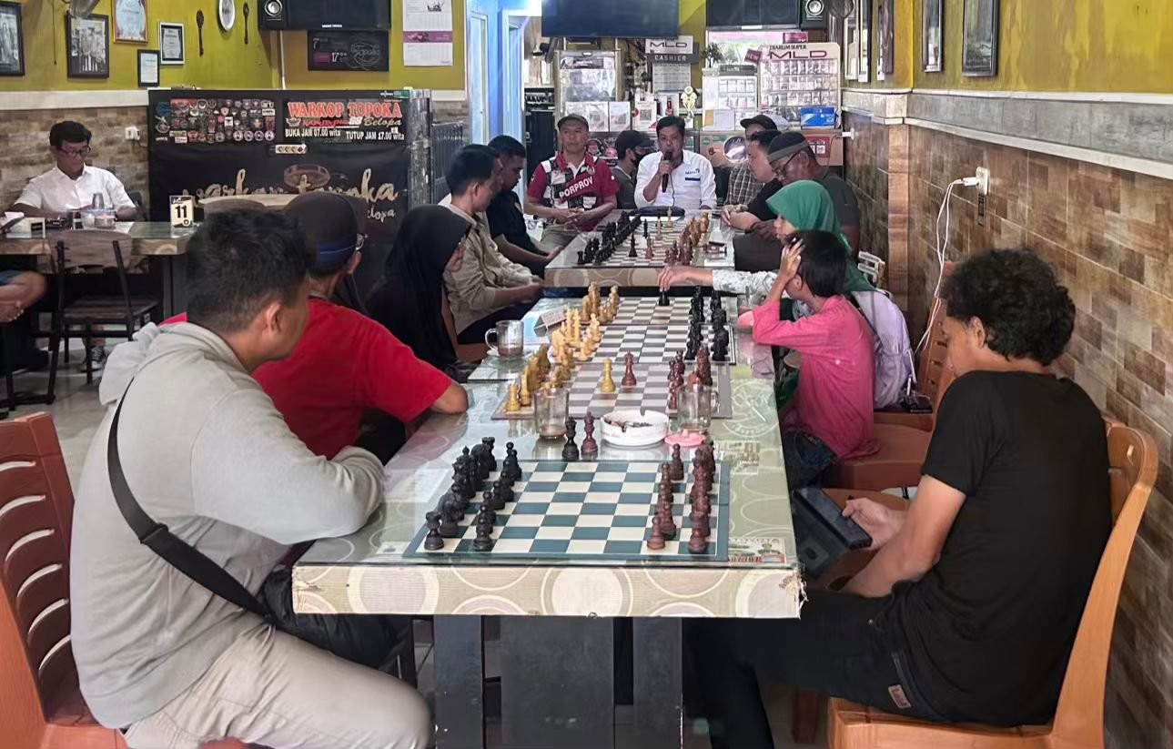 Ketua Percasi Luwu, Mistam, memberikan arahan kepada para peserta seleksi atlet catur Pra Porprov Sulsel 2025 yang digelar di salah satu warung kopi di Belopa, Rabu (13/8/2025). (ist)