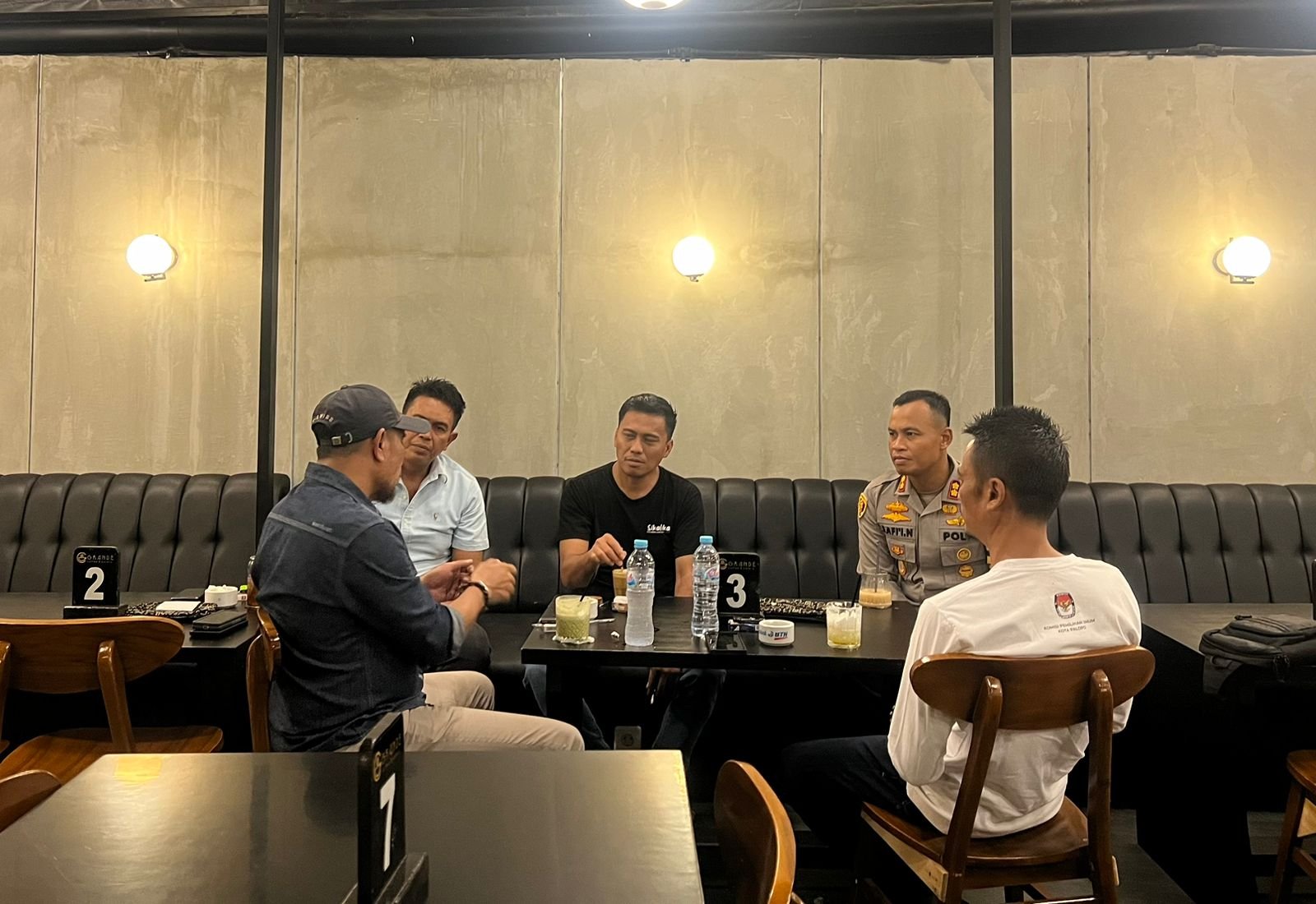 PALOPO, TEKAPE.co – Kapolres Palopo AKBP Safi’i Nafsikin, SH., SIK., MH mengadakan pertemuan dengan Ketua KPU Kota Palopo, Irwandi Djumadin di Grande Coffee & Eatery, Jl. Opu Tosappaile, Kelurahan Lagaligo, Kecamatan Wara, Kota Palopo.
