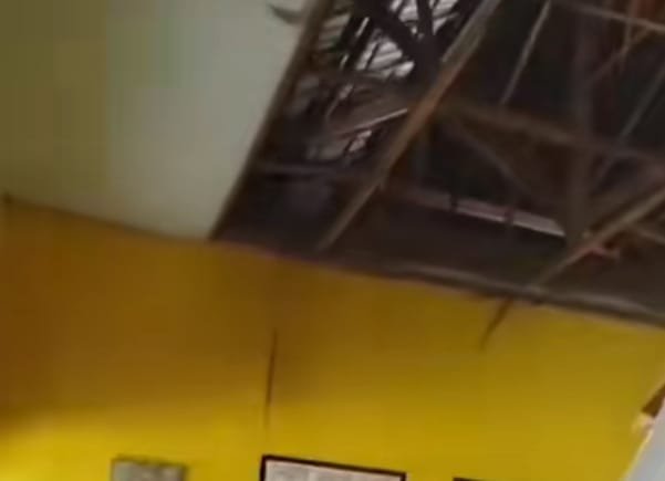 Kondisi plafon yang runtuh tampak memprihatinkan.