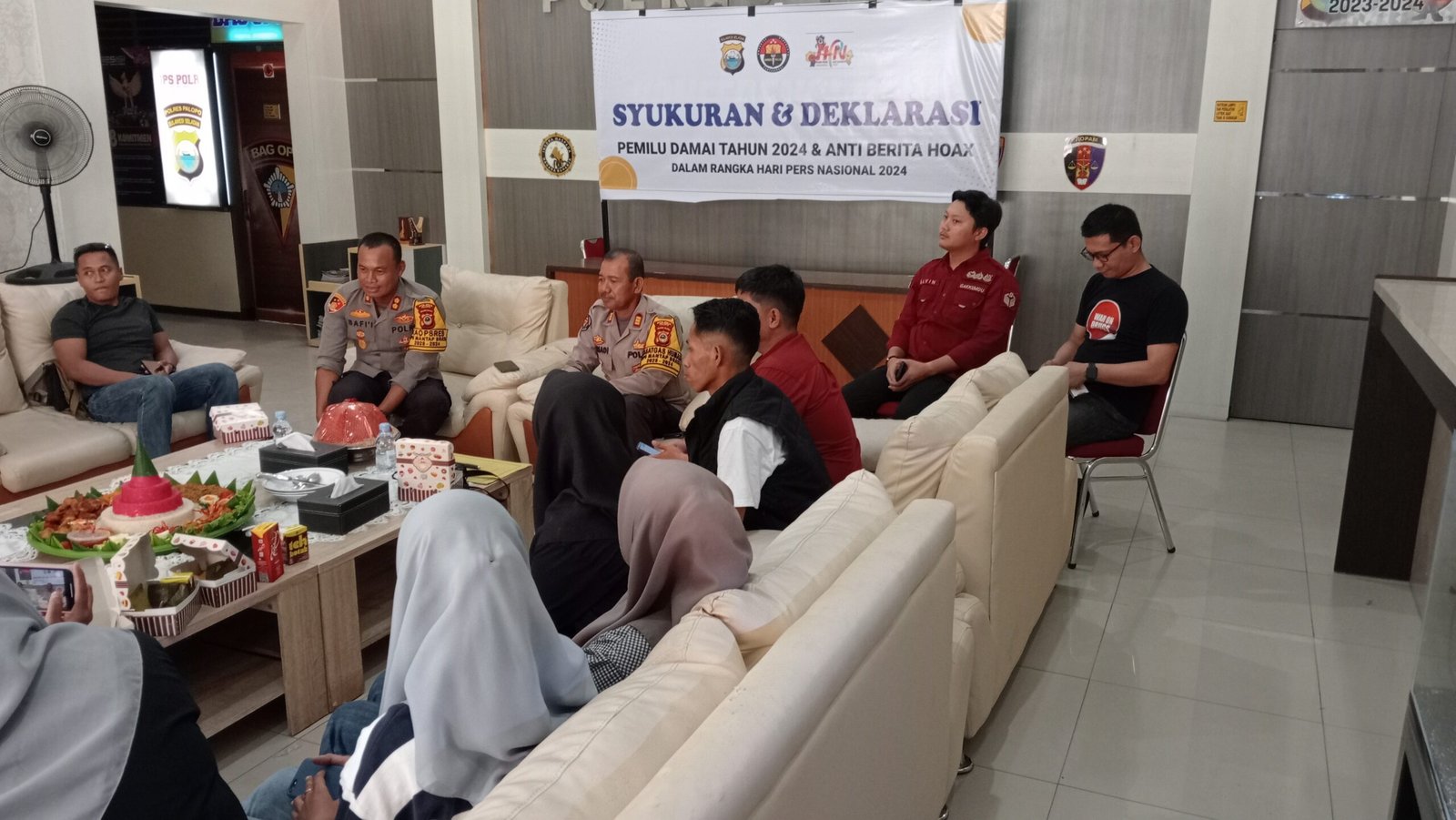 Kapolres Palopo AKBP Safi'i Nafsikin didampingi Kasi Humas AKP Supriadi, Kasat Reskrim Iptu Alvin Aji Kurniawan, Kasat Narkoba Iptu Firman dalam Syukuran, Deklarasi Pemilu Damai yang dirangkaikan peringati Hari Pers Nasional 2024. (ist)