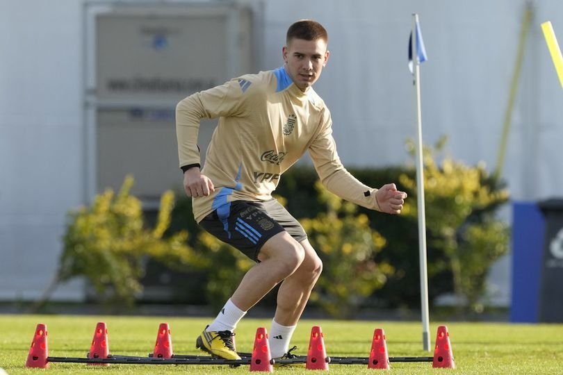 Franco Mastantuono saat mengikuti sesi latihan Timnas Argentina. (c) AP Photo/Gustavo Garello.