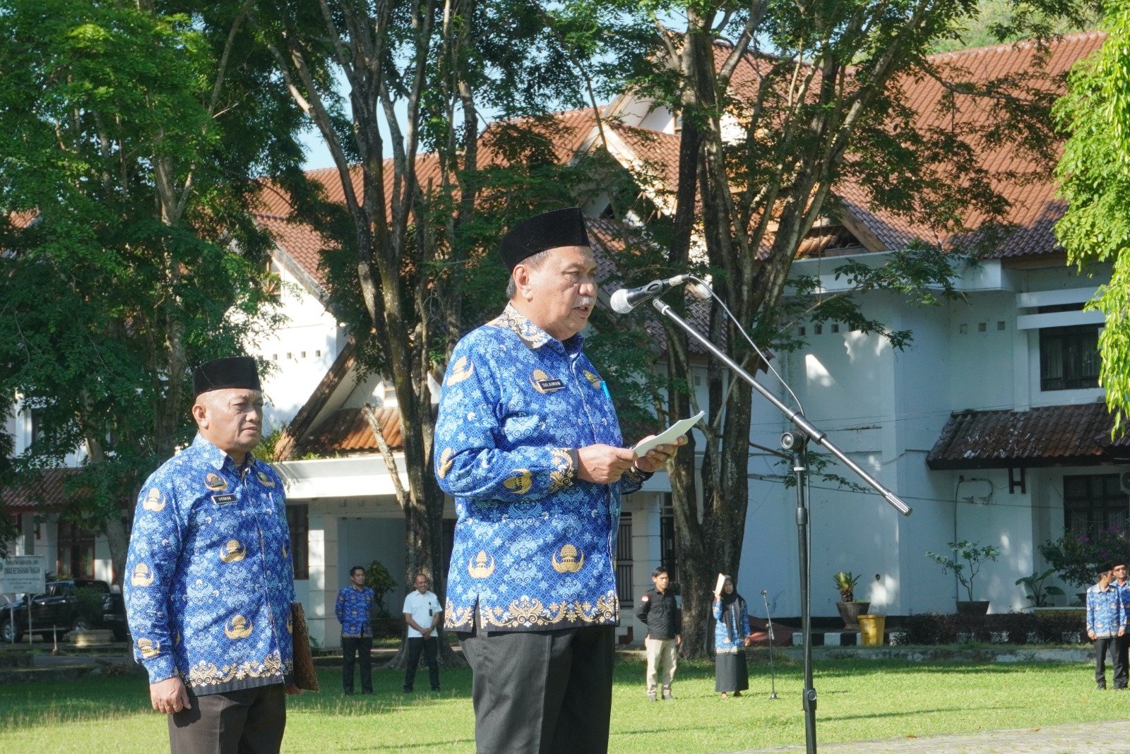 Sekretaris Daerah Kabupaten Luwu, Drs. H. Sulaiman, MM, memimpin upacara peringatan Hari Kesaktian Pancasila 2025 di lapangan Kantor Bupati Luwu, Belopa, Rabu (1/10/2025). (ist)