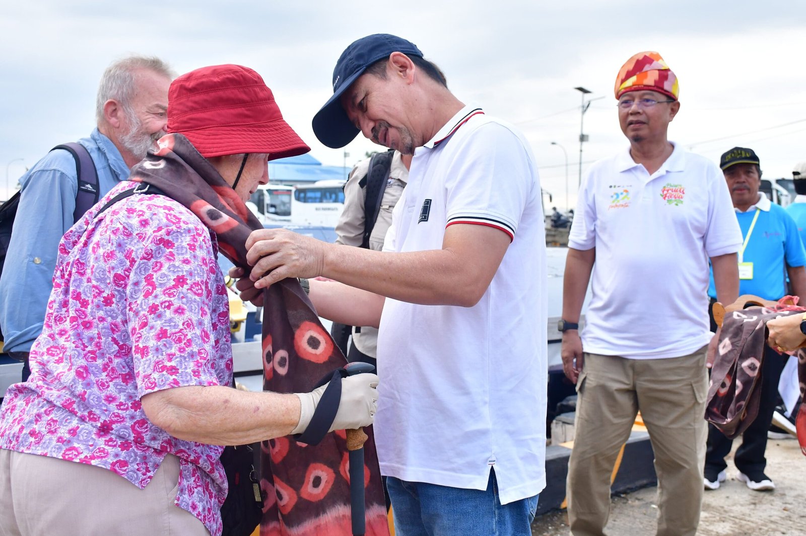 PALOPO, TEKAPE.co – Sekda Palopo Firmanzah menyambut wisatawan mancanegara di pelabuhan Tanjung Ringgit Kota Palopo, Minggu (31/03/2024).