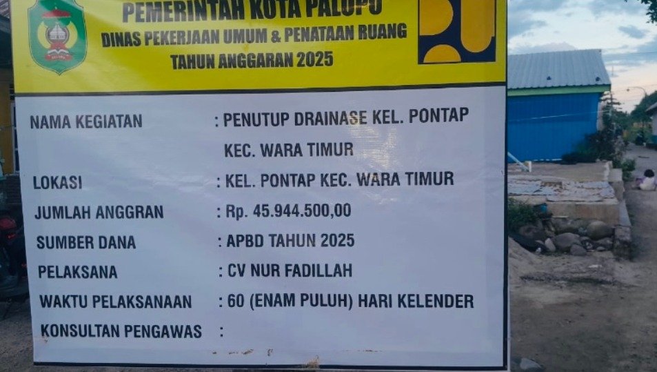 PALOPO, TEKAPE.co – Proyek penutupan drainase di Kelurahan Pontap, Kecamatan Wara Timur, Kota Palopo, tengah menjadi sorotan.