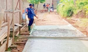 Kepala Pekon Sukoharjo 1 Abdul Hakim saat meninjau lokasi pembangunan rabat beton di dusun V