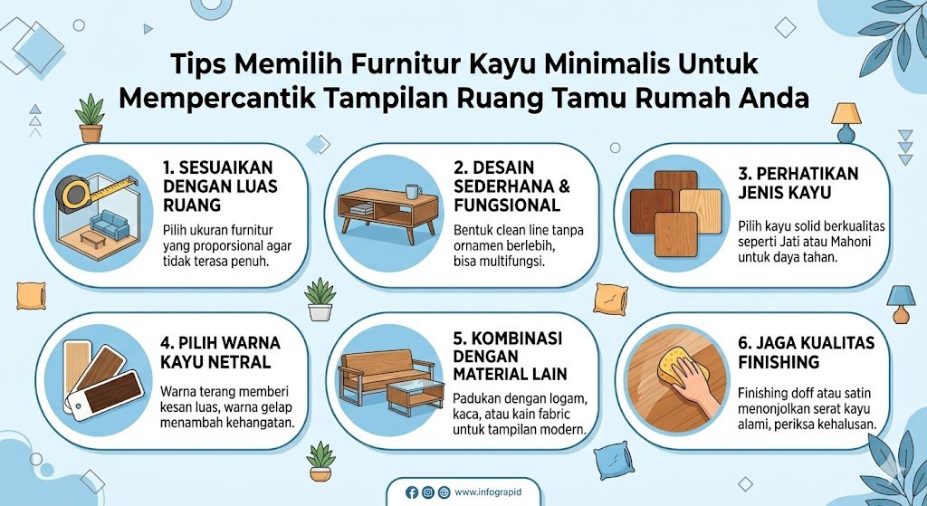 Ruang tamu merupakan jantung dari sebuah hunian karena di sanalah kesan pertama para tamu terbentuk sekaligus menjadi tempat berkumpulnya anggota keluarga. Memilih furnitur yang tepat bukan hanya soal fungsi, melainkan juga soal estetika yang mampu mencerminkan kepribadian pemilik rumah. Belakangan ini, tren furnitur kayu minimalis semakin digemari karena mampu memberikan kesan hangat, alami, sekaligus modern dalam satu waktu. Kayu memiliki karakter yang kuat dan daya tahan yang baik, sehingga investasi pada furnitur jenis ini sangat menguntungkan untuk jangka panjang. Namun, untuk mendapatkan tampilan yang sempurna, ada beberapa aspek penting yang perlu diperhatikan agar ruang tamu Anda tidak terasa penuh atau justru terlihat membosankan.