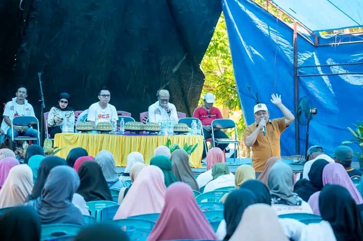 MORUT, TEKAPE.co – Sedikitnya 300 orang relawan Delis-Djira di Desa Tirongan Bawah dan beberapa desa sekitarnya, tampak terpesona mendengar orasi tokoh masyarakat dan politisi asal Bungku Utara H. Abudin Halilu, Selasa siang di Tirongan Bawah.