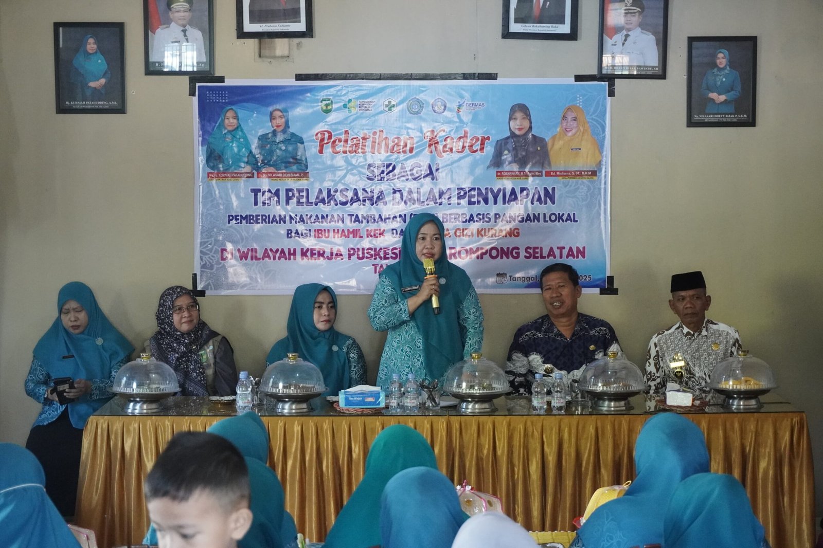 Pelatihan ini berfokus pada penyiapan dan pengelolaan Pemberian Makanan Tambahan (PMT) berbasis pangan lokal sebagai upaya mencegah stunting dan masalah gizi.