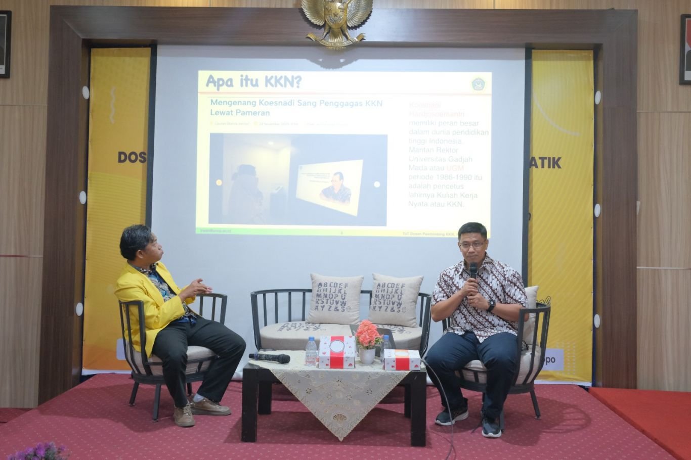 Materi pertama tentang Kebijakan KKN disampaikan oleh Bapak Irwan Ramli, P.hD. selanjunya materi kedua diampaikan oleh Aryadi Nurfalaq, S.Si., M.T. tentang teknis pelaksanaan KKN Tematik.
