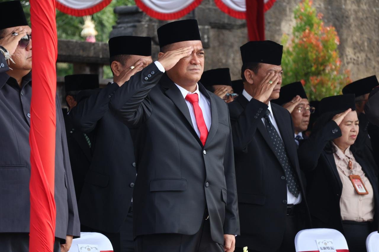 Bertindak sebagai Inspektur Upacara, Sekretaris Daerah Provinsi Bali, Drs Dewa Made Indra, yang diikuti oleh peserta upacara yang terdiri dari Forum Koordinasi Pimpinan Daerah (Forkopimda) Provinsi Bali, Instansi Vertikal di Provinsi Bali, Veteran, TNI, Polri, ASN, Dosen, Guru, Organisasi Masyarakat, Pelajar hingga kalangan masyarakat dengan mengenakan pakaian Adat Bali.