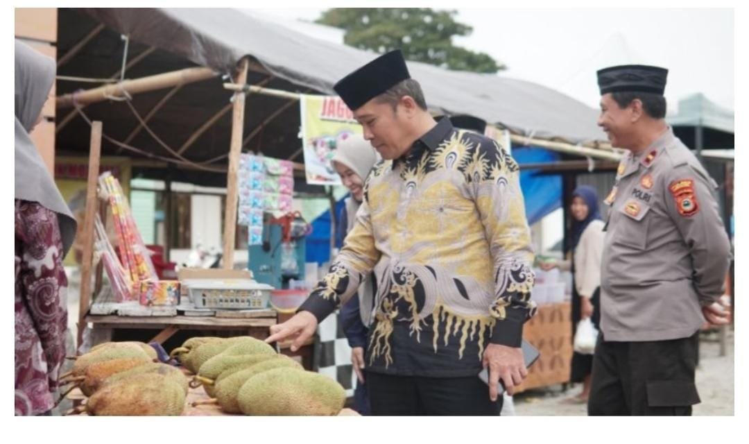 LUWU UTARA, TEKAPE.co — Wakil Bupati Luwu Utara, Jumail Mappile, meninjau langsung aktivitas Pasar Ramadan yang digelar di depan Kantor Camat Mappedeceng, Kamis (6/3/2025).