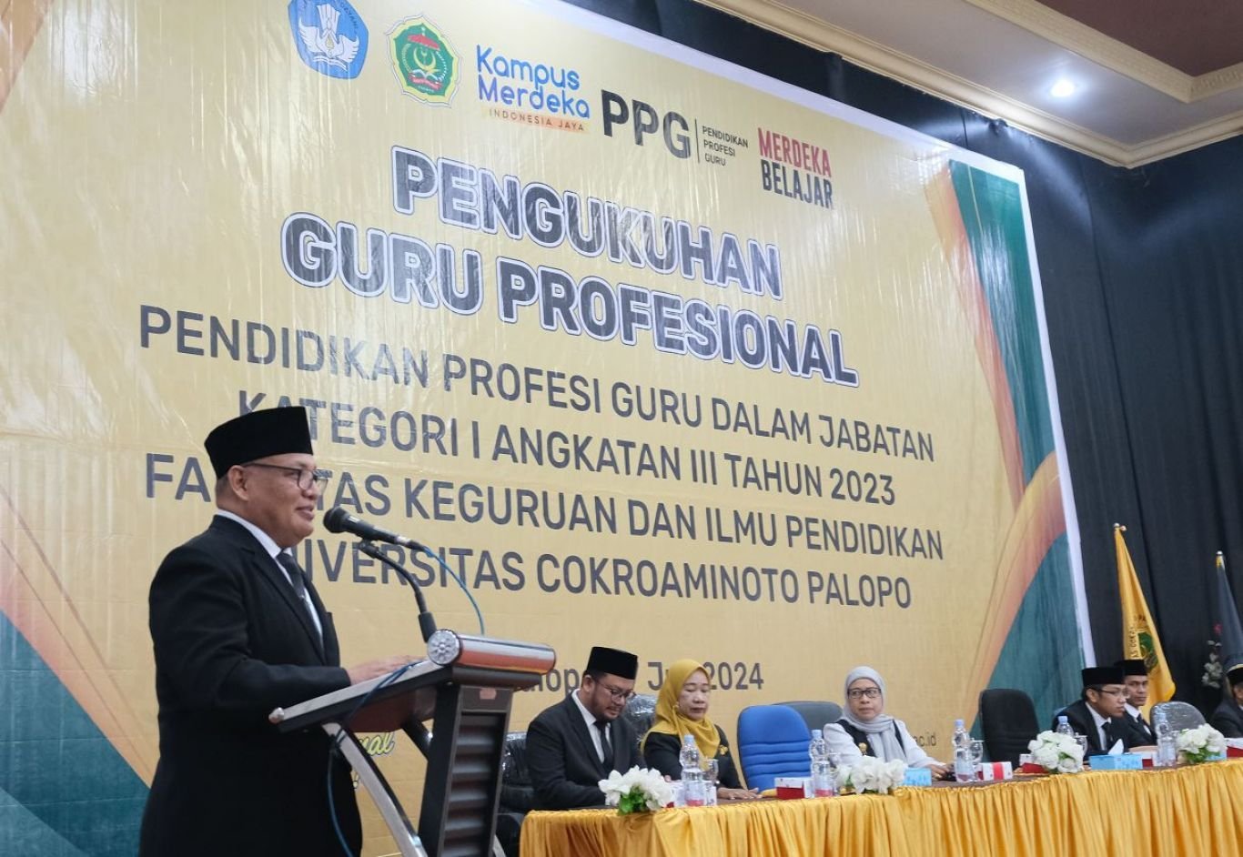 PALOPO, TEKAPE.co – Fakultas Keguruan dan Ilmu Pendidikan (FKIP) Universitas Cokroaminoto Palopo (UNCP) menyelenggarakan Yudisum Guru Profesional Pendidikan Profesi Guru dalam Jabatan Kategori I angkatan 3 Tahun 2023.